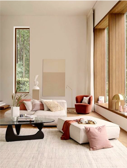 - la palette di colore, dalle tonalità chiare e neutre, che possono essere anche accostate a quelle più forti, utili a generare movimento cromatico;