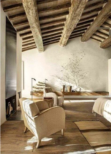 - Pavimenti realizzati in travertino, pietra, cotto o legno grezzo;