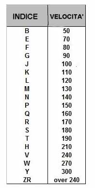 - H indica il codice di velocità, pari a 210 km/h (anch’essa rilevabile tramite apposita tabella).