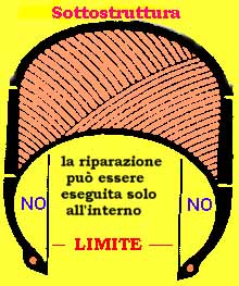 La riparazione può essere effettuata solo all’interno, come indicato dai due disegni qui sopra.