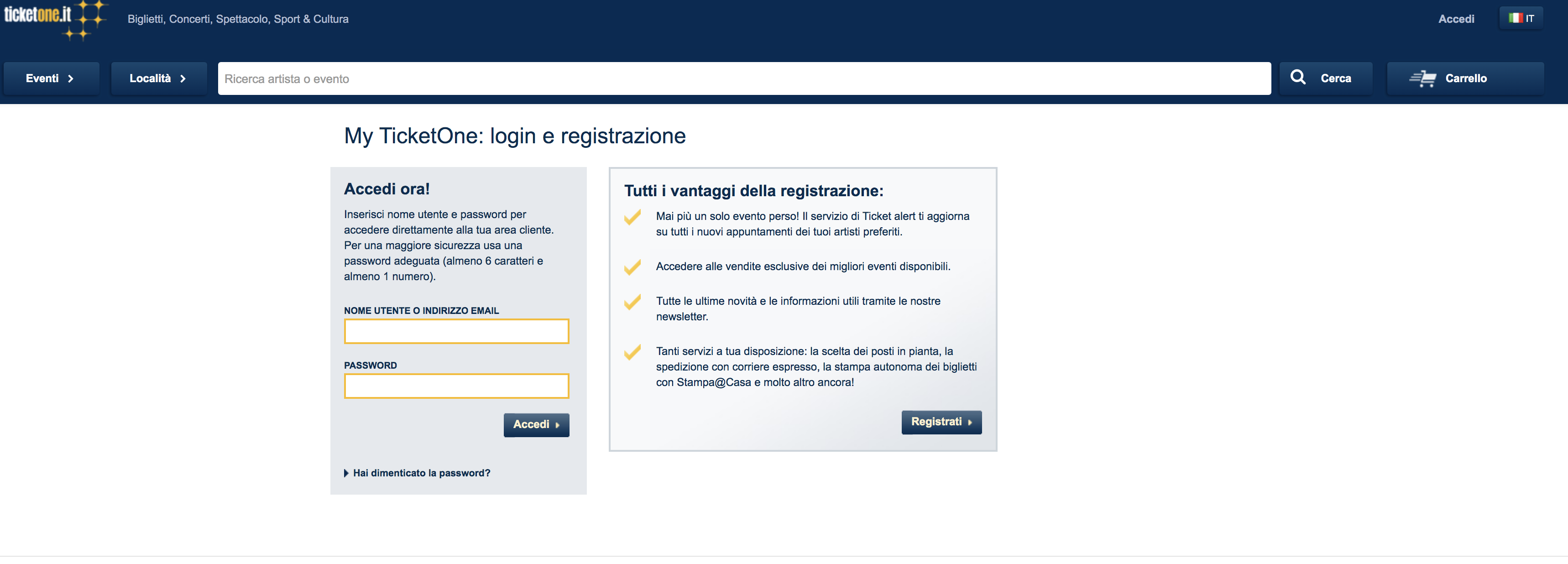 Come si accede a Ticket One